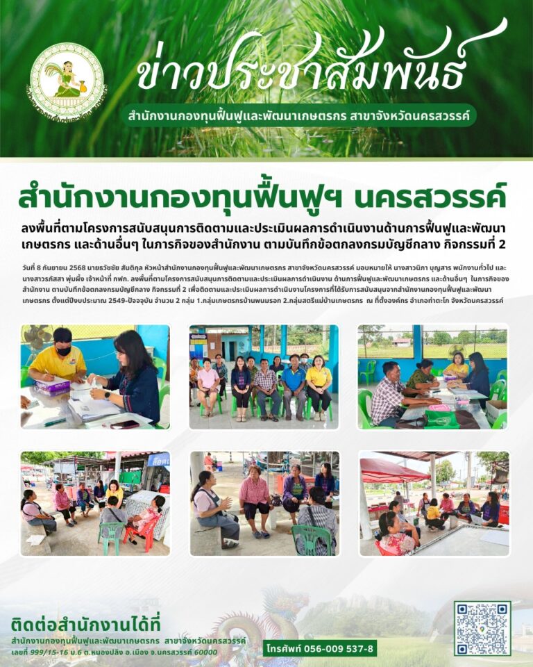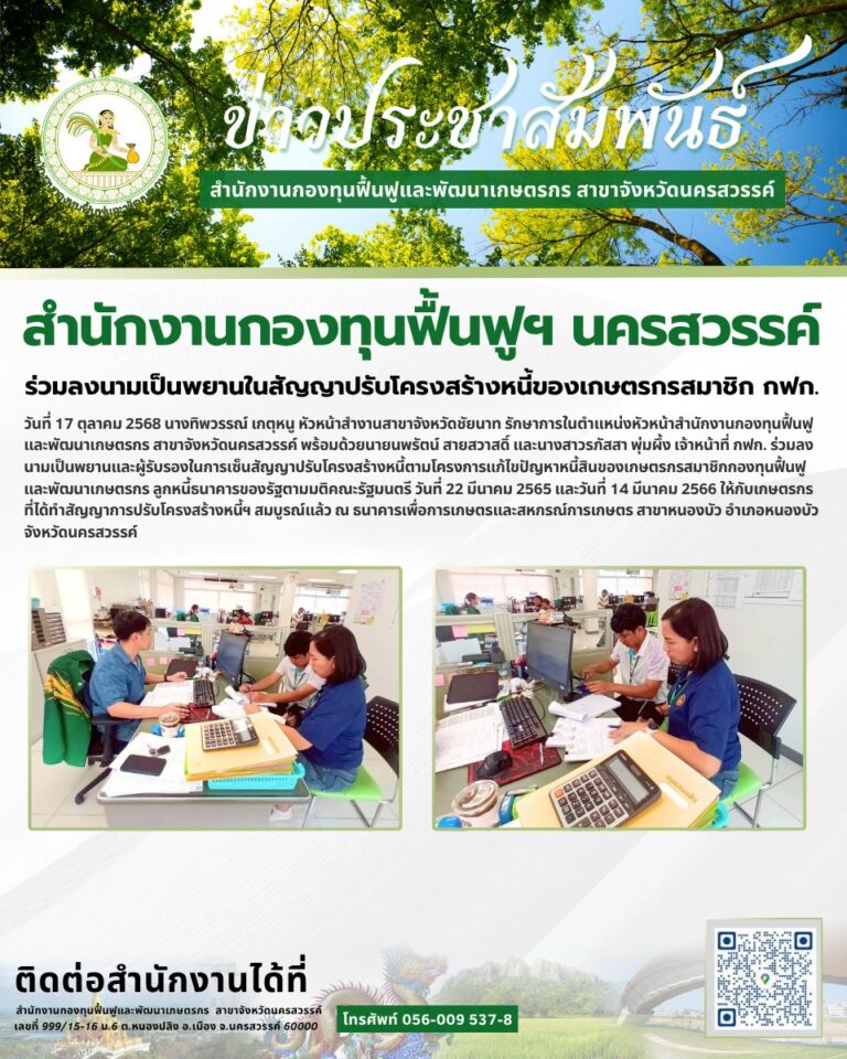 และด้านการจัดการหนี้ของเกษตรกร สาขาจังหวัดนครสวรรค์